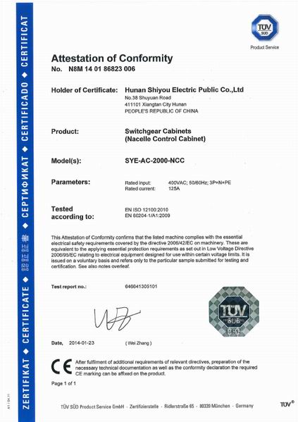 經(jīng)世界權(quán)威認(rèn)證機(jī)構(gòu)德國TUV的嚴(yán)格評審,世優(yōu)電氣風(fēng)力發(fā)電機(jī)組電控系統(tǒng)全系列產(chǎn)品榮獲歐盟CE認(rèn)證,標(biāo)志著世優(yōu)電氣產(chǎn)品進(jìn)入主流國際市場的重大突破。