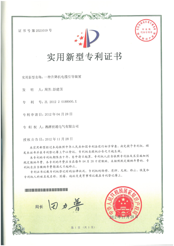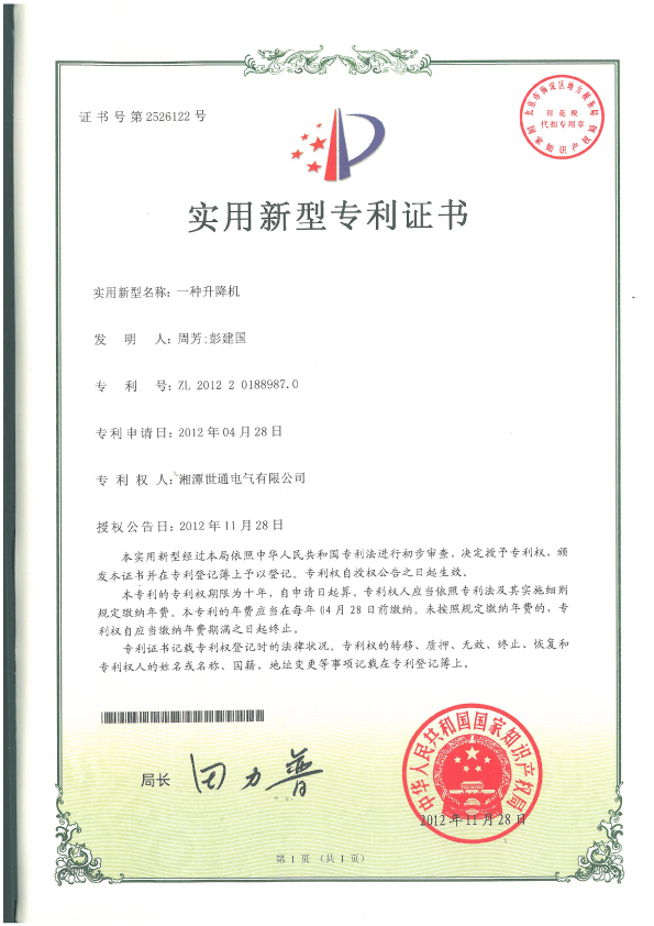 ◆ 本公司塔筒專用升降機(jī)獲得多項(xiàng)國(guó)家專利