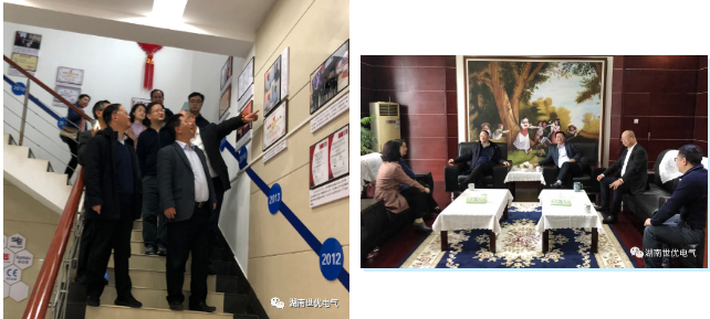On April 21st, Academician Wang Yaonan of the Chinese Academy of Engineering and President Cao Yi of Changsha University of Science and Technology visited Hunan Shiyou Electric Co., Ltd. for on-site inspection. Mr. Peng Jianguo, the founder of the company, and the management warmly welcomed him.